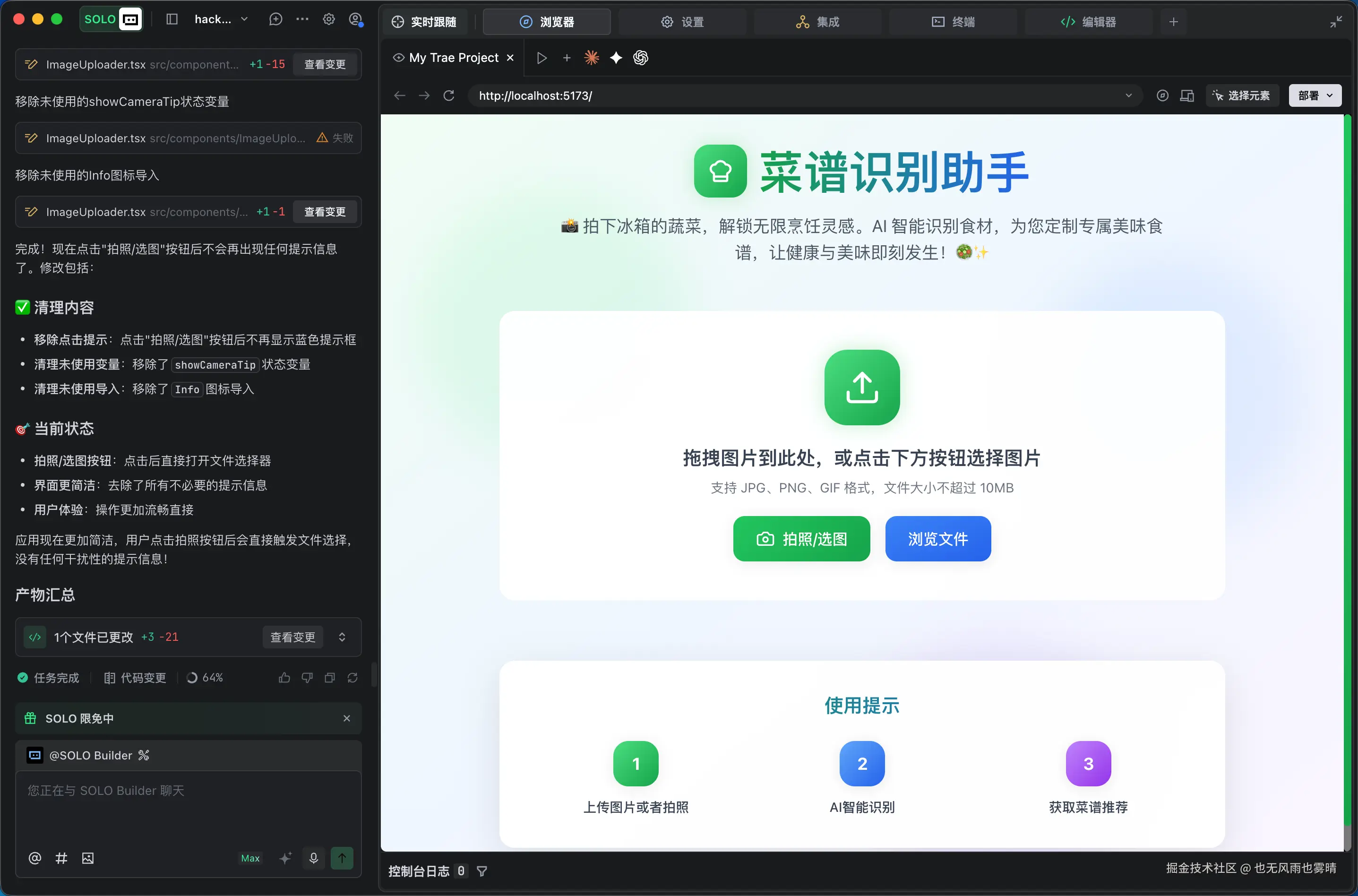 记一次 Trae 苏州 Hackathon 之旅:用 Solo 模式把"做饭灵感"变成现实(获优秀奖!)