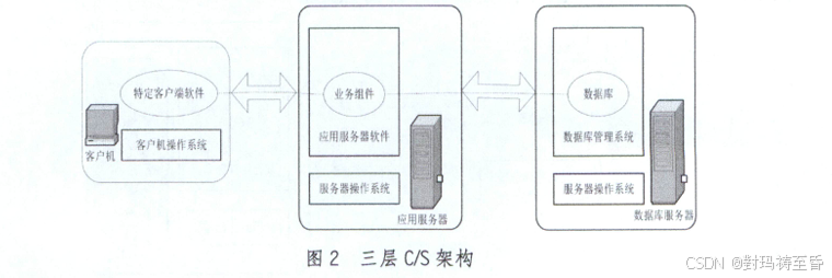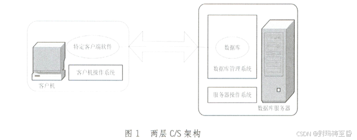 由客户机、数据库服务器两层构成。其特点是客户端计算机(即客户机)要安装特定的客户端软件,业界称这种客户机为"胖客户机"或"胖客户端",服务器指数据库服务器,其上运行数据库管理系统并驻留数据库。