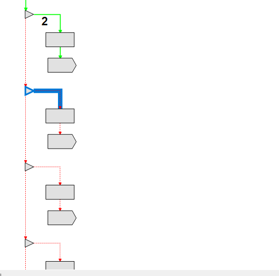 红色虚线说明没进入,双击后可以在右下方看到灰色高亮的源码,表示没测到的地方。