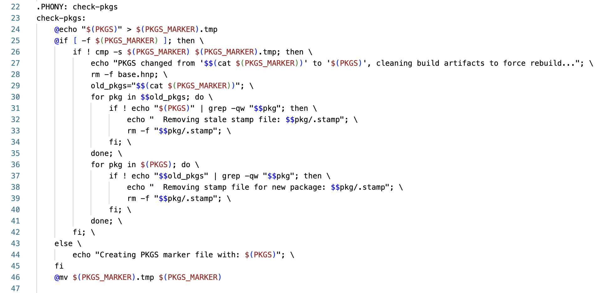 check-pkgs机制自动检测PKGS变化并触发重新构建