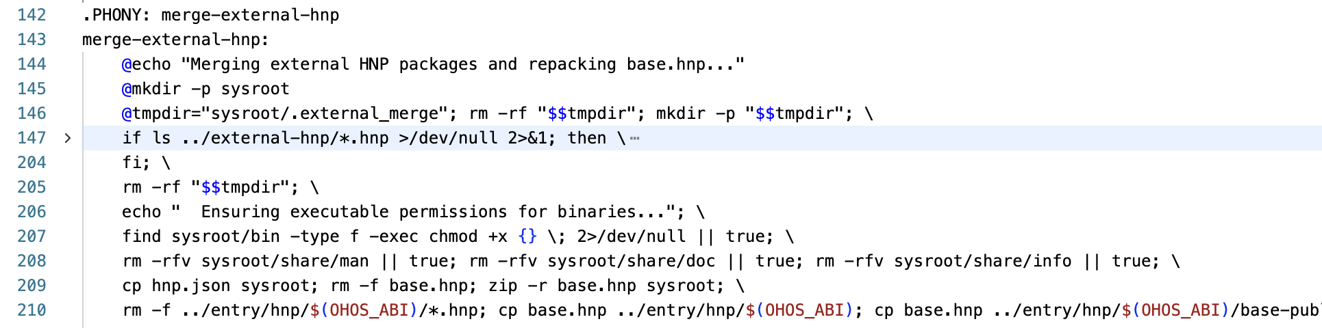 build-hnp/utils/MakefragCC/CXX/LD/AR/RANLIB/...均指向 OHOS SDK 的 LLVM 工具链($(OHOS_SDK_HOME)/native/llvm/bin)- 通过