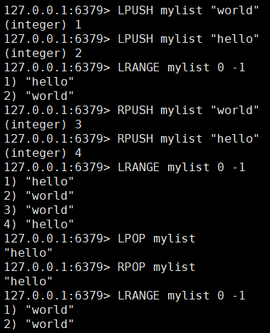 - LPOP:从 list 左侧取出元素(即头删)。