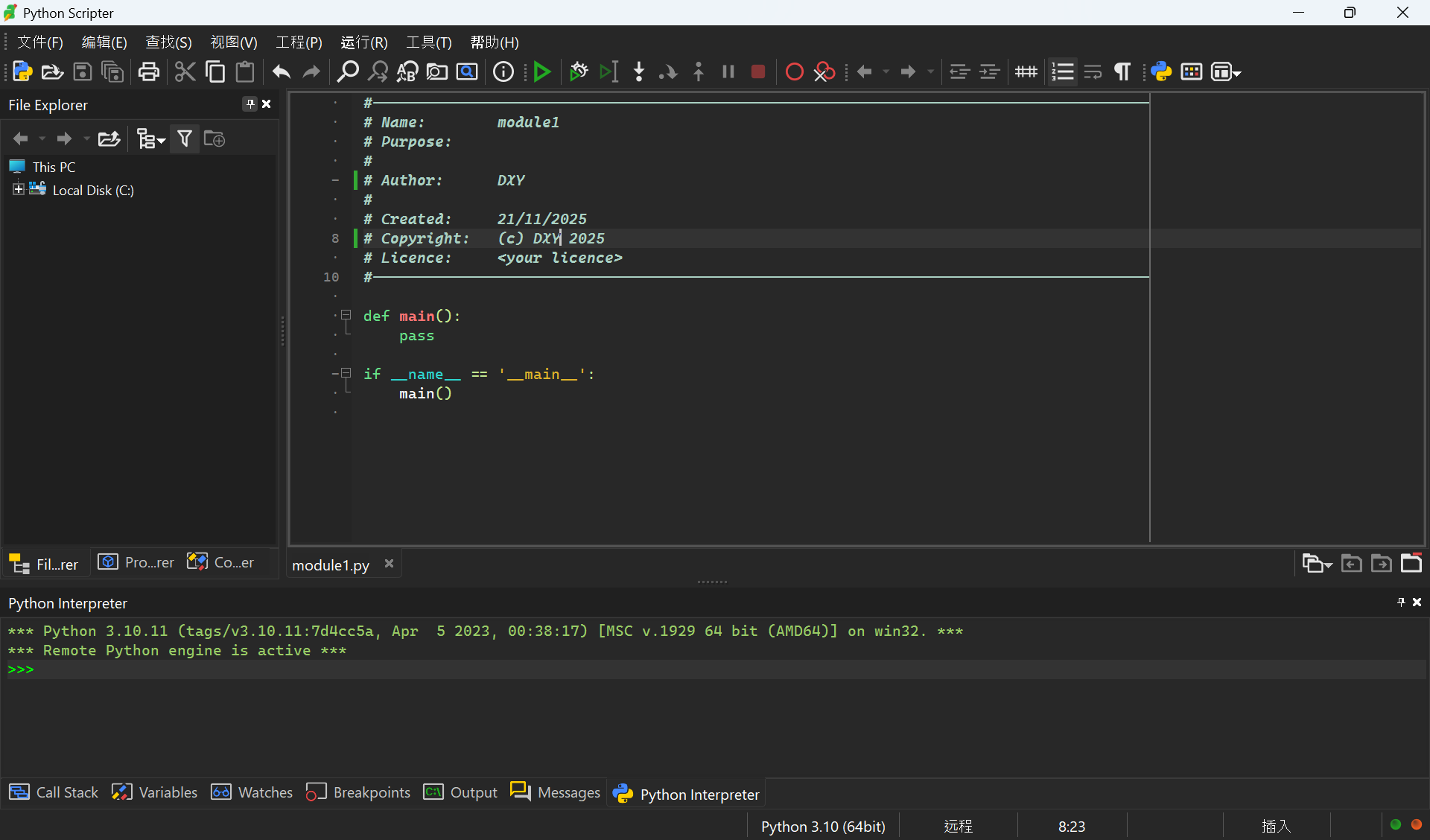 安装完成之后,运行 PyScripter.exe: