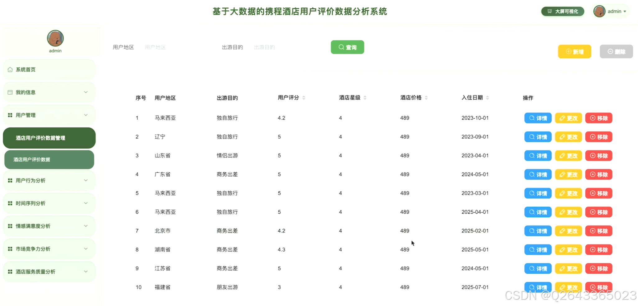 基于情感分析+spark大数据的携程酒店用户评价数据可视化 !!!请点击这里查看功能演示!!!