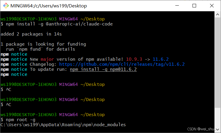bashnpm install -g @anthropic-ai/claude-code2、配置 Claude Code,Git Bash 中执行命令创建配置文件