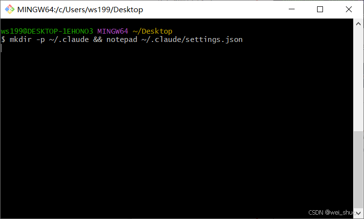 bashmkdir -p ~/.claude && notepad ~/.claude/settings.json