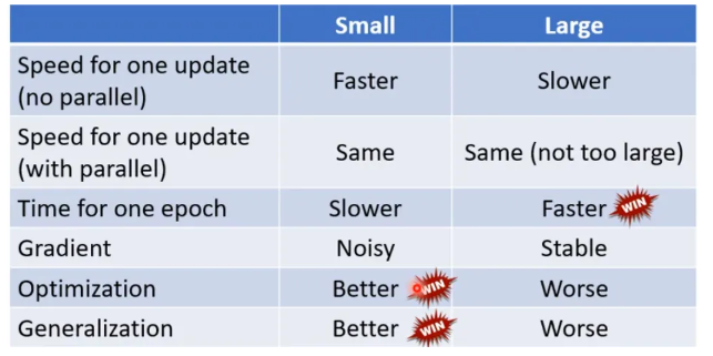 时间上,large batch 跑完一个epoch的时间反而短,因为GPU并行运算的能力