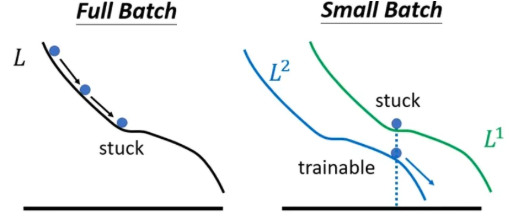 而且 Small batch is better on testing data,大的batch size会让我们倾向于走到峡谷里面