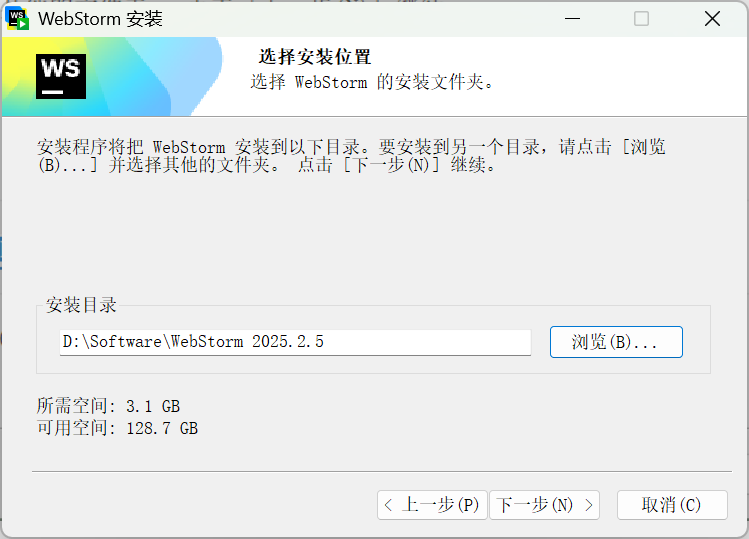 我自己的安装目录是D:\Software\WebStorm 2025.2.5,大家自己调整即可