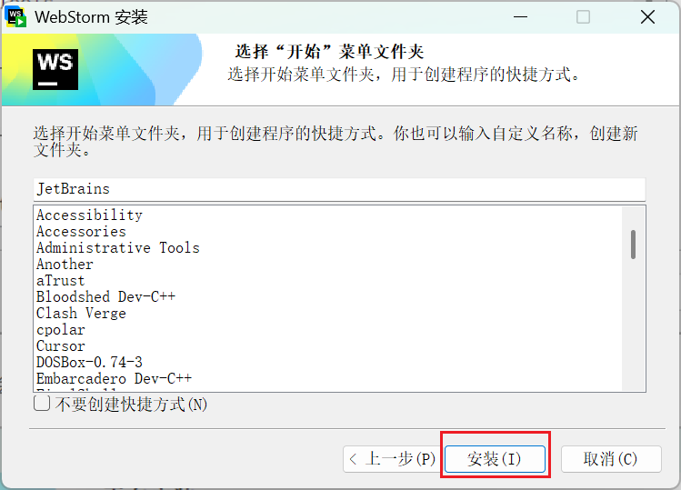 出现选择"开始"菜单文件夹,啥都不用管直接点击安装即可