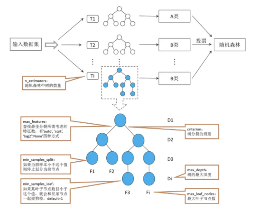 | n_estimators | 随机森林中树的数量 | default=10,默认10个基决策树 |
