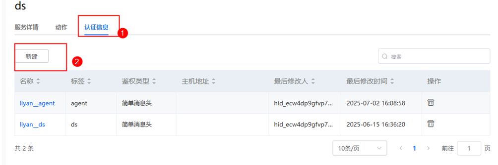 步骤 7 点击认证信息,新建,输入名称和标签