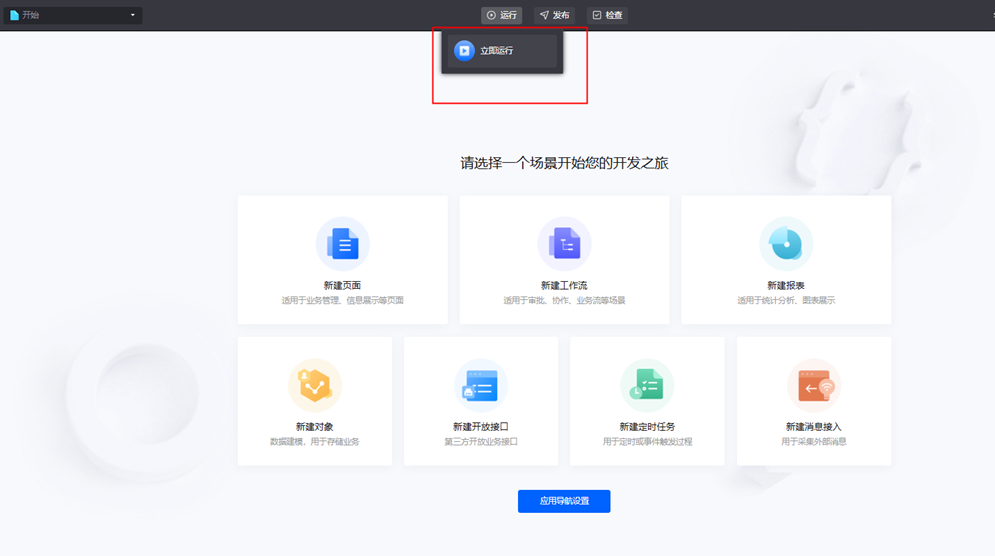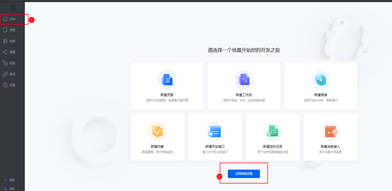 步骤 1 应用导航设置。 1. 在应用导航栏中,单击左侧"开始"选项,单击"应用导航设置"。