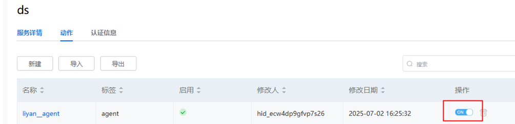 步骤 2 点击刚创建的连接器,选择右侧栏动作按钮,点击新建