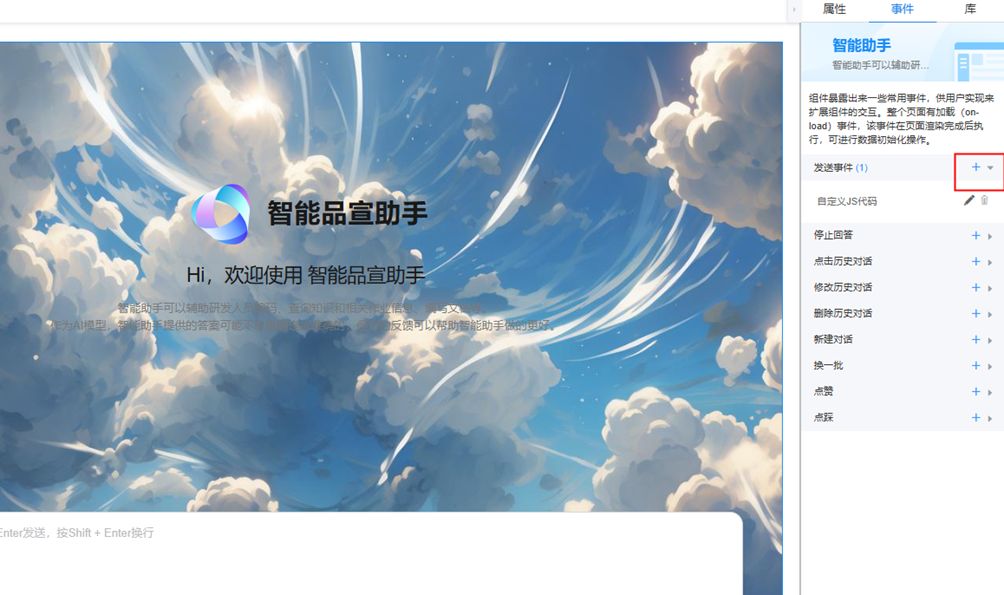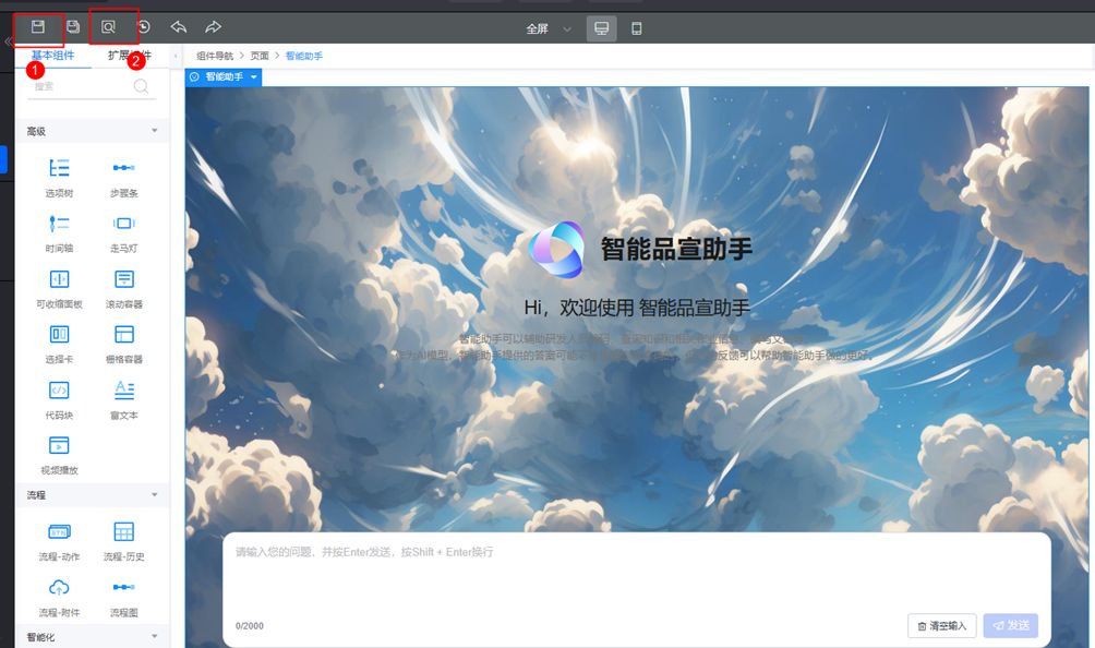 步骤 2 在基本组件中最底部,将智能助手拖拽至页面中,得到如下界面。