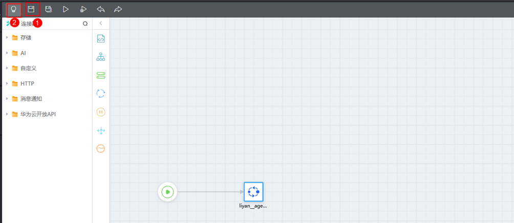 将以下代码复制粘贴进脚本页面:其中第15行var _flow = context.flow("liyan__agent");这里的liyan_agent需改为用户自己之前步骤创建的编排名称。