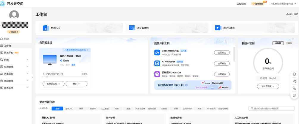 步骤 1 登录开发者空间 点击此处。