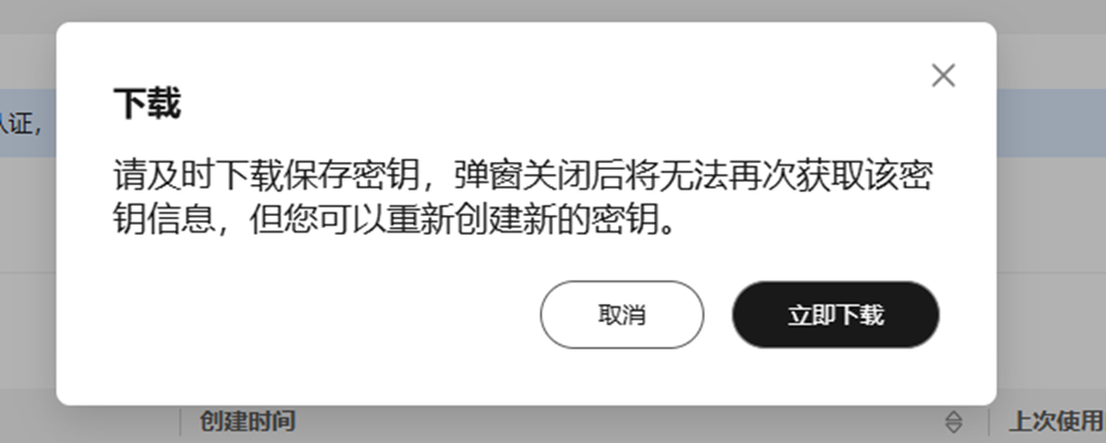 创建成功后,请立即下载您的API Key并妥善保存