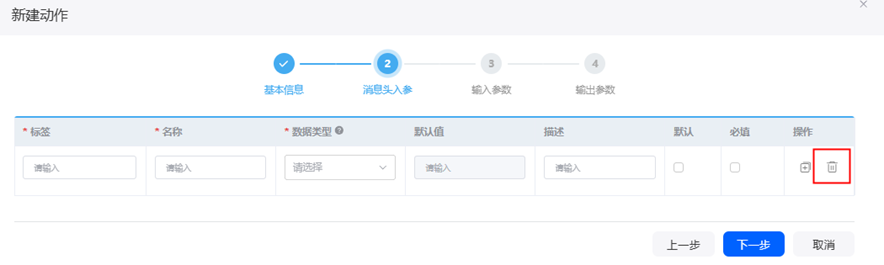步骤 4 消息头入参这步,直接点击右侧删除按钮,进入下一步。