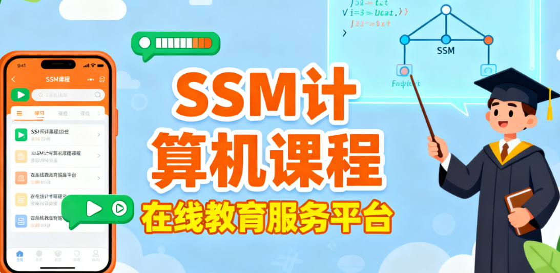 与此同时,在线教育凭借其灵活便捷、资源丰富、交互性强的优势,已成为教育领域的重要发展方向。而在技术实现层面,SSM(Spring + Spring MVC + MyBatis)框架作为Java EE领域成熟稳定的开发架构,具有低耦合、高可扩展性、开发效率高的特点,能够为在线教育平台提供坚实的技术支撑。