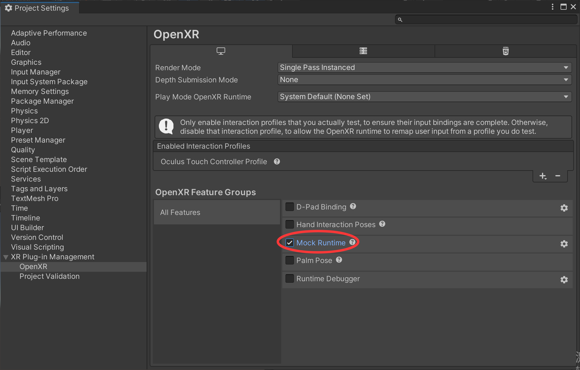 如果没有硬件设备,那么可以开启OpenXR中的VR模拟器,如图3