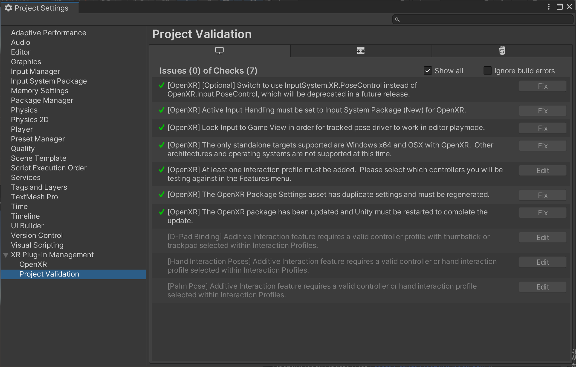 我在配置VR时,发现即使OpenXR已经配置完成,并且已经没有任何报错或警告,如图1