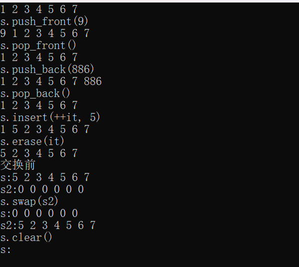 s.swap(s2);//交换两个list中的元素