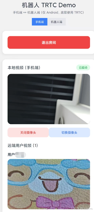 手机端 ↔ 机器人端(仅 Android,底层使用 TRTC)