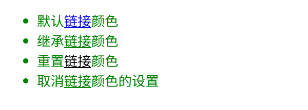 <li class="my-class-1">继承<a href="#">链接</a>颜色</li>