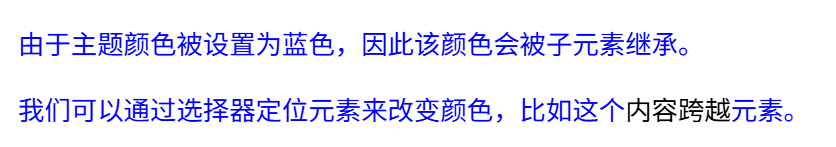 就像前面看到的,类选择器 的权重大于元素选择器,因此类上定义的属性将覆盖应用于元素上的属性。