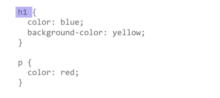 - 在上面的示例中,CSS 规则以一个选择器开头,用于选择 我们要设置样式的 HTML 元素。在这个例子中,我们为一级标题(