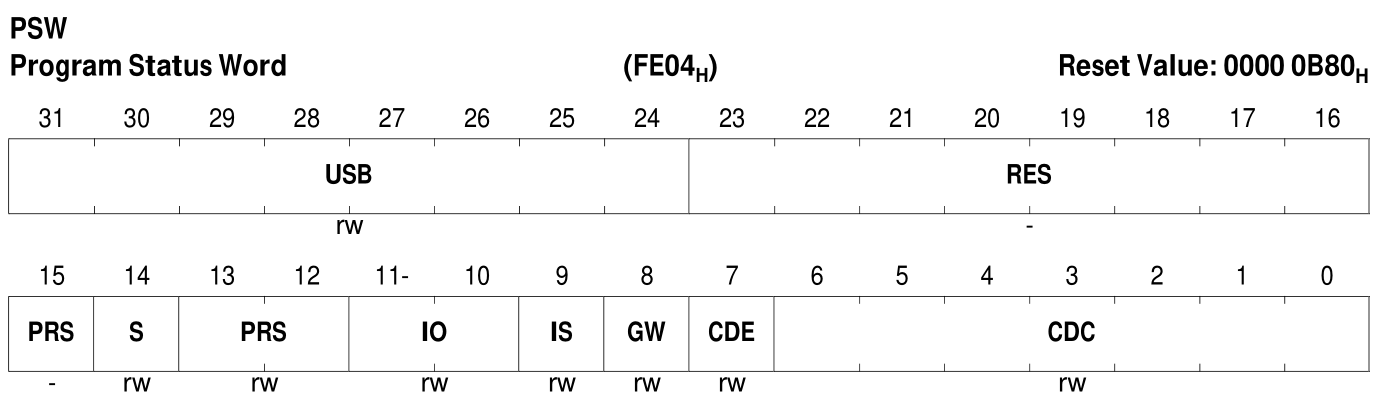在任何给定时间,其中一个集合是当前的保护寄存器集,它决定当前任务的内存访问是否合法。PSW.PRS 字段确定当前的保护寄存器集编号。通过硬件支持的原子性切换(修改PSW.PRS),避免了在软件中逐个重新配置几十个保护范围寄存器所带来的巨大时间开销,保证了上下文切换的确定性和速度。