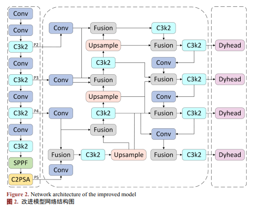 (1) 新增P2小目标检测层,以更高分辨率捕获微小目标细节提升召回率;