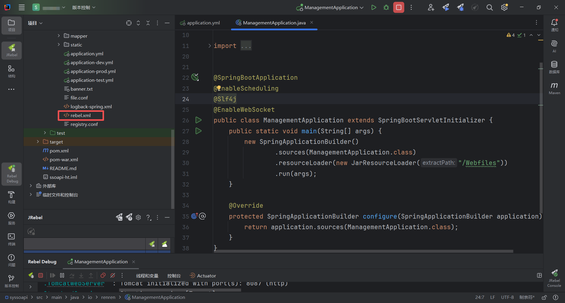 注意这个文件rebel.xml需要重新生成。