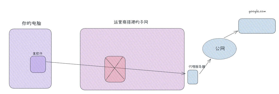 开发一个软件,在自己的电脑。同时在一些对外开放的区域(比如US,JP),安装代理服务器。此时我们的各种访问google的请求都会被本地的特殊软件拦截获取 ,并对这些请求做加密,直接访问这个代理服务器,然后对这个加密信息做解密,访问真正的资源。