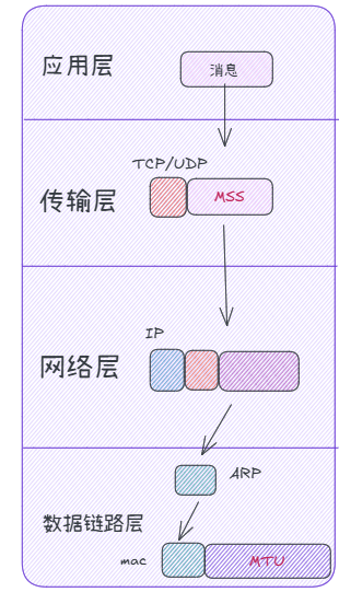 从上面的叙述也可以看出,MSS和MTU的关系可以由下图表示