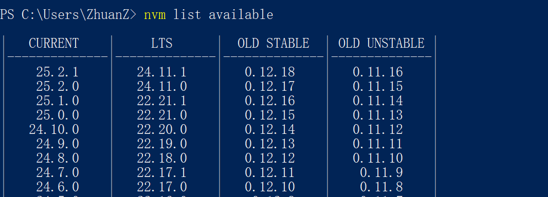 nvm list # 查看已安装版本(带 * 的是当前使用版本)