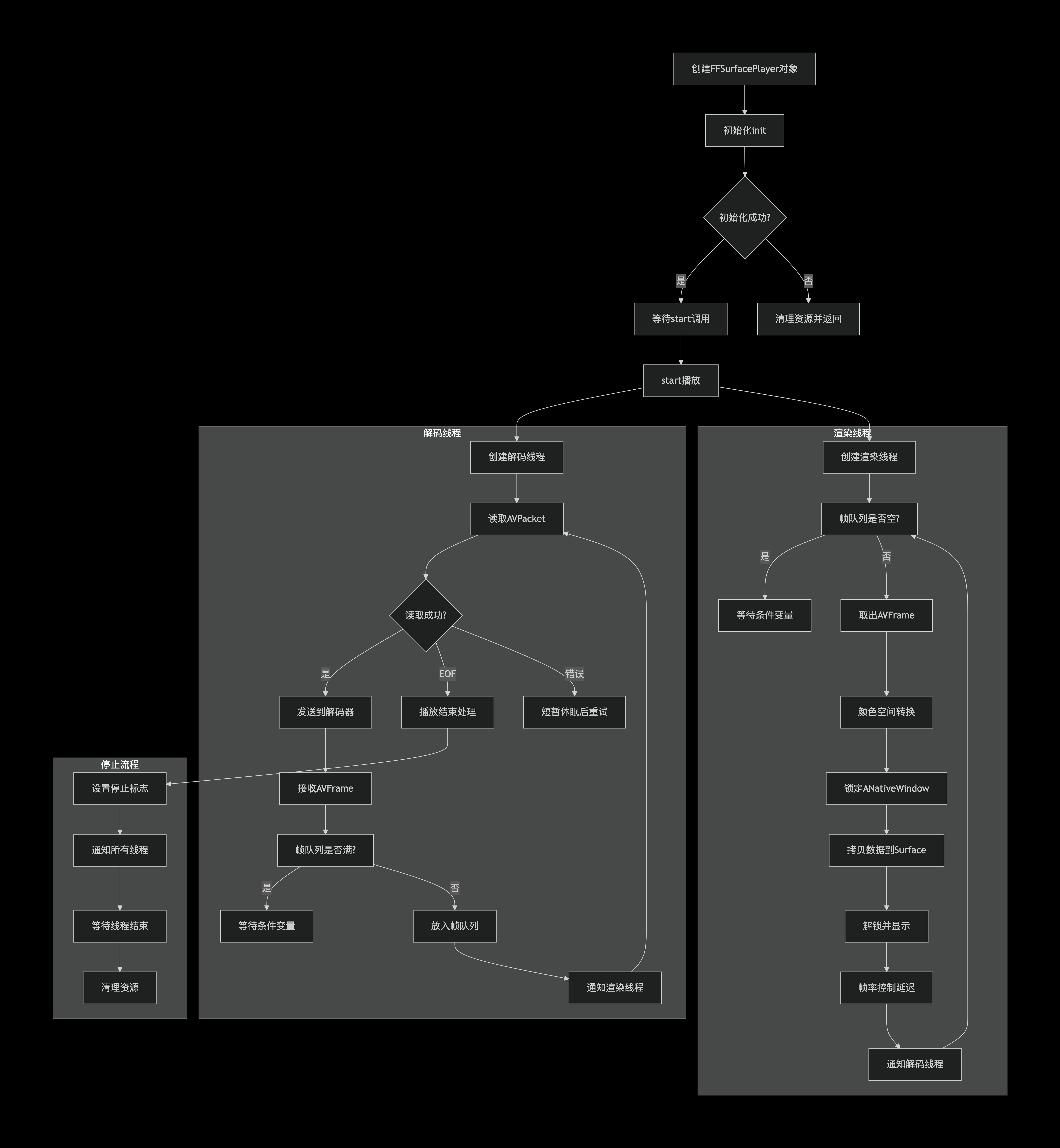 引入一个线程安全的队列,在解码线程与渲染线程之间进行AVFrame的传递。