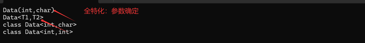 Data<int,char> d1;//调用特化的模板