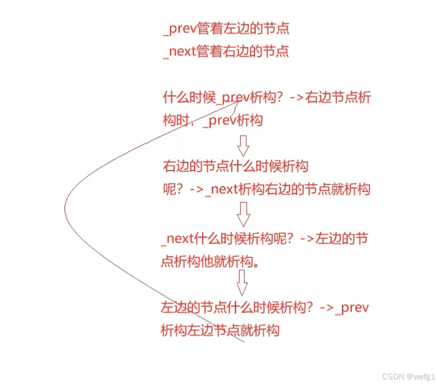 解决方案:在引用计数的场景下,把节点中的 _prev 和 _next 改成 weak_ptr 就可以了