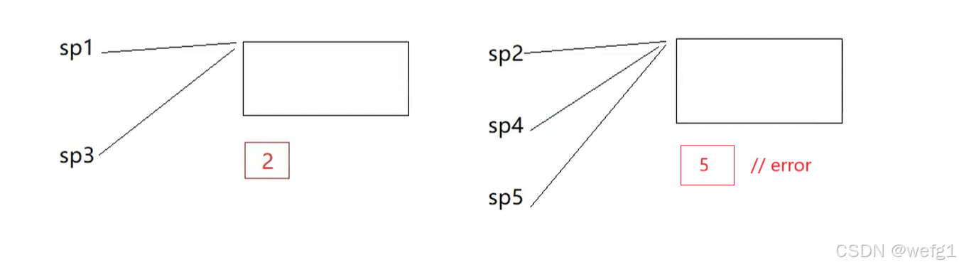 - shared_ptr 引用计数支持拷贝,需要拷贝的场景,就使用它。但是要小心构成循环引用,循环引用会导致内存泄漏