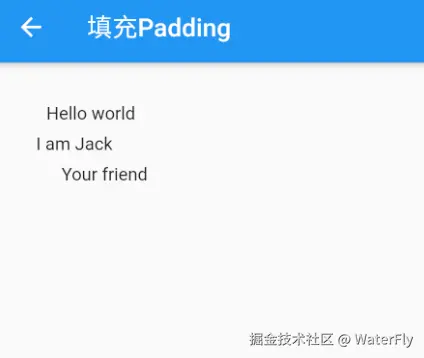 Padding可以给其子节点添加填充(留白),和边距效果类似。我们在前面很多示例中都已经使用过它了,现在来看看它的定义: