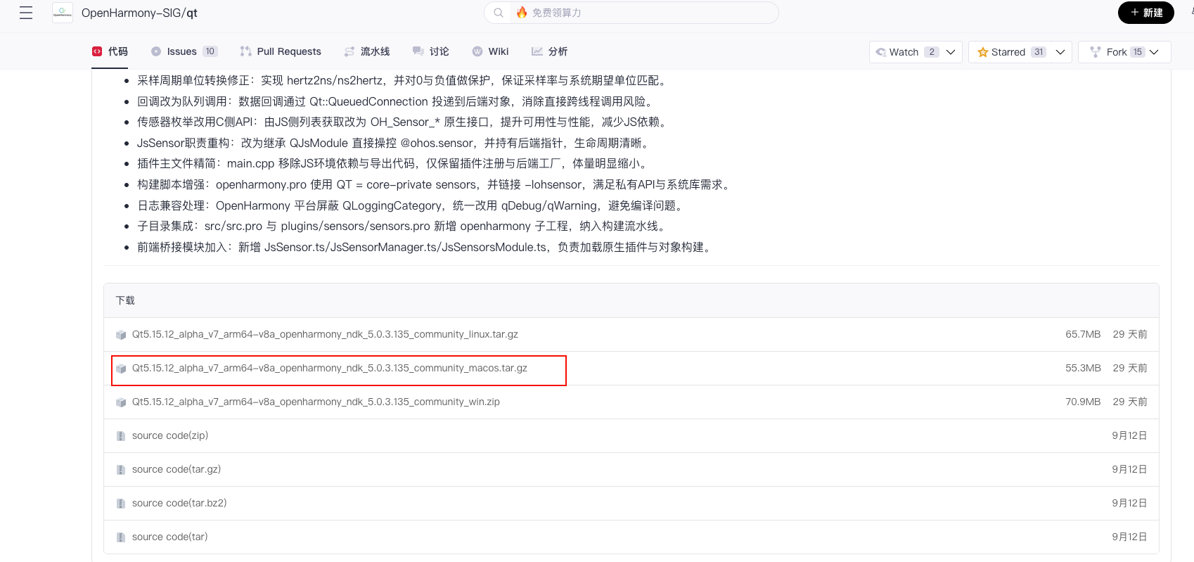 通过文档,我们得知 Qt 的下载包地址:https://gitcode.com/openharmony-sig/qt/releases