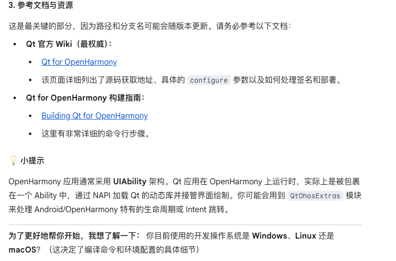 直接上 Prompt: 我想使用 Qt 开发 OpenHarmony,如何开始搭建环境?有什么文档可以参考的吗?