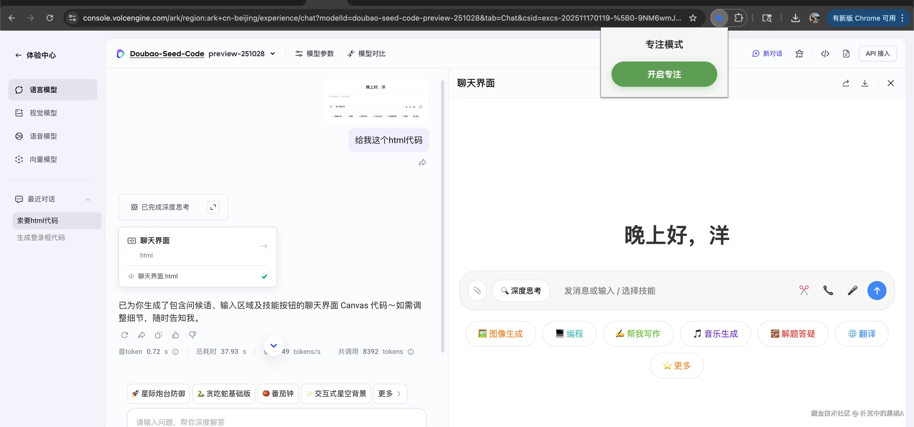 最近 Doubao-Seed-Code 模型的热度很高,为了真实检验它在编码和项目协作上的""实战""能力,我决定跳出常规的算法问答,直接给它上了一个""项目大考"":我将扮演产品经理,让它扮演开发者,从零开始帮我完整构建一个"专注模式"的 Chrome 插件,以此来评测它在理解需求、构建框架乃至解决问题的全流程表现。
