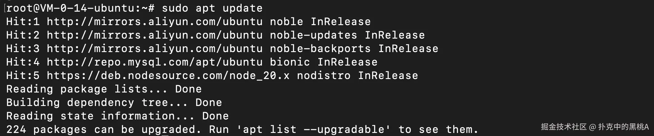 - 详细说明 :这个命令会连接到 Ubuntu/Debian 的软件源(服务器),获取一份最新的软件包信息(比如哪些软件有新版本,依赖关系是什么)。它并不会实际安装或升级任何软件,只是让系统"知道"最新情况。