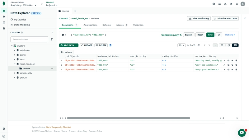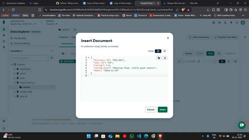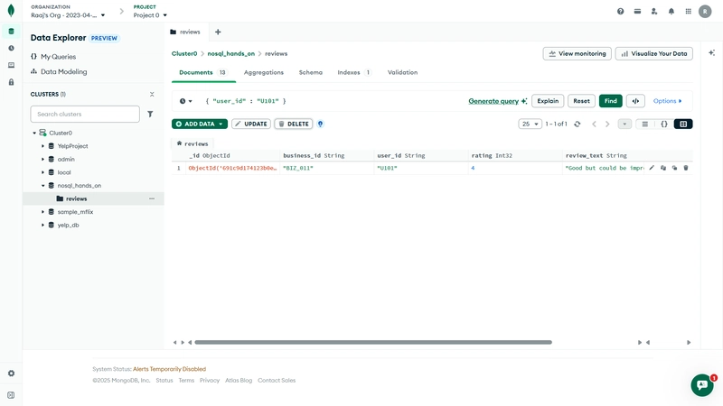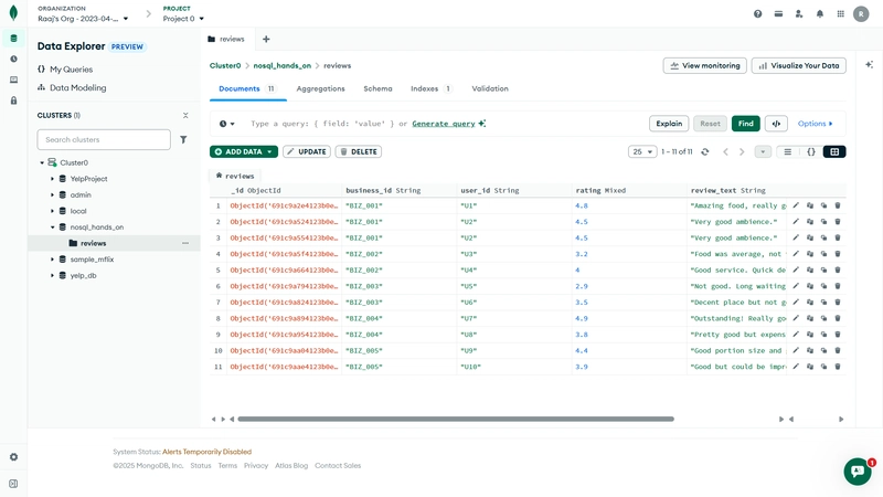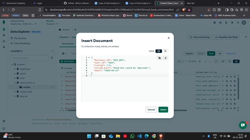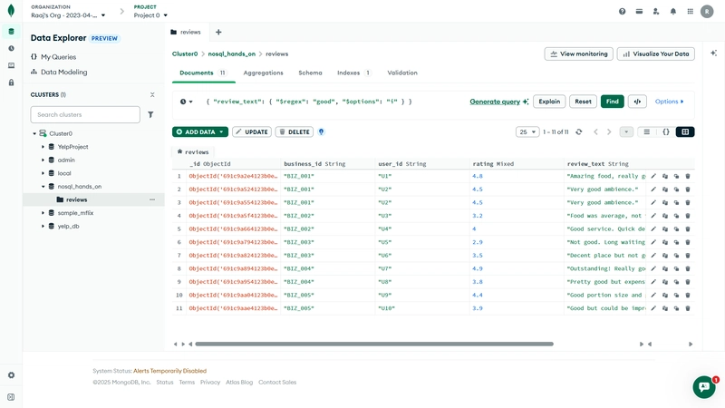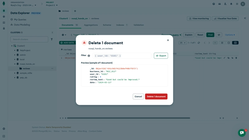 祝贺!🎉 你已经成功地用 MongoDB Atlas 完成了所有核心的 NoSQL作------完全在浏览器中完成,无需安装任何本地工具。