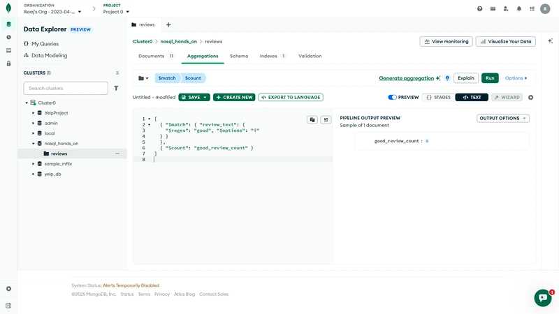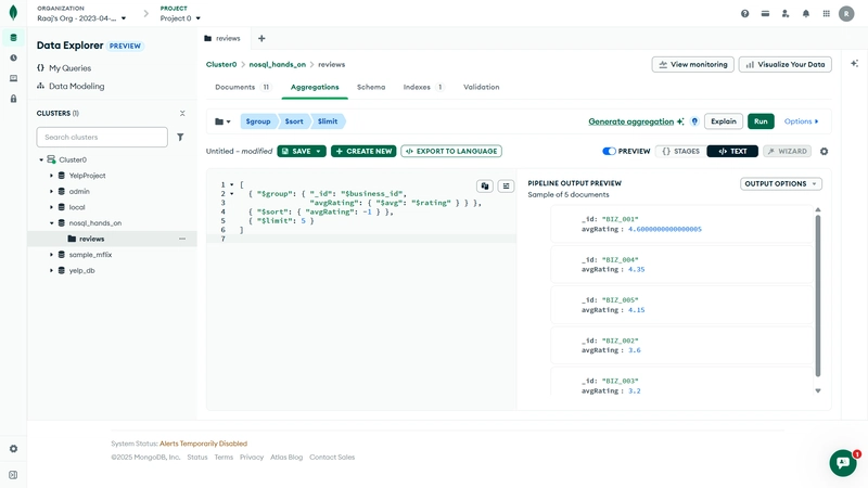 这种工作流程非常适合学生、初学者以及任何想学习MongoDB、但不想本地安装复杂性的人。Atlas 界面为数据探索和作提供了强大的界面。