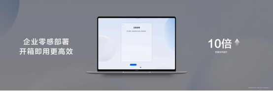 基于HarmonyOS 6打造的鸿蒙电脑企业版专为企业而生,经过消费市场验证后在商用领域能够更好的为企业用户服务。其通过开放算力,让企业可以根据自身业务特点训练和部署专属AI模型,在保障信息安全的前提下,将智能办公提升至新高度;鸿蒙电脑企业版支持企业零感部署,设备开箱自动完成安全策略和环境配置,精准下载并应用对应的策略模板,简化了IT部署流程,降低了运维门槛和成本。