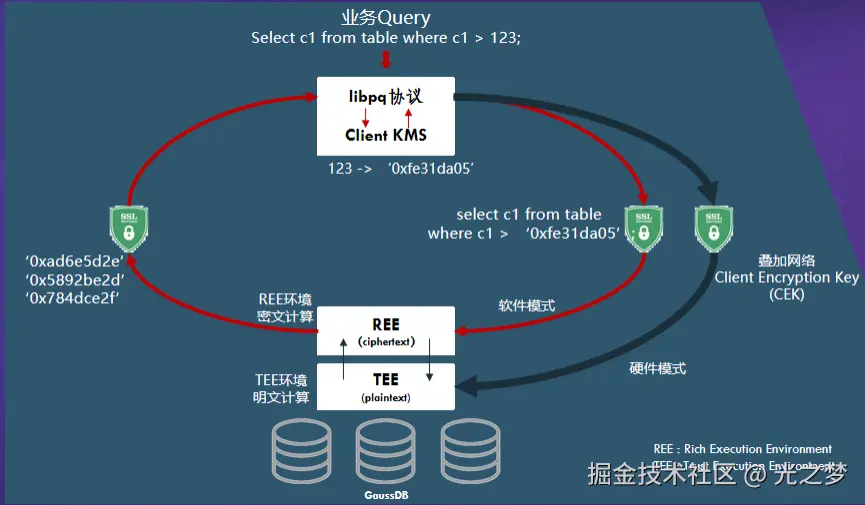 REE(Rich Execution Environment) :处理密文操作,保障性能。